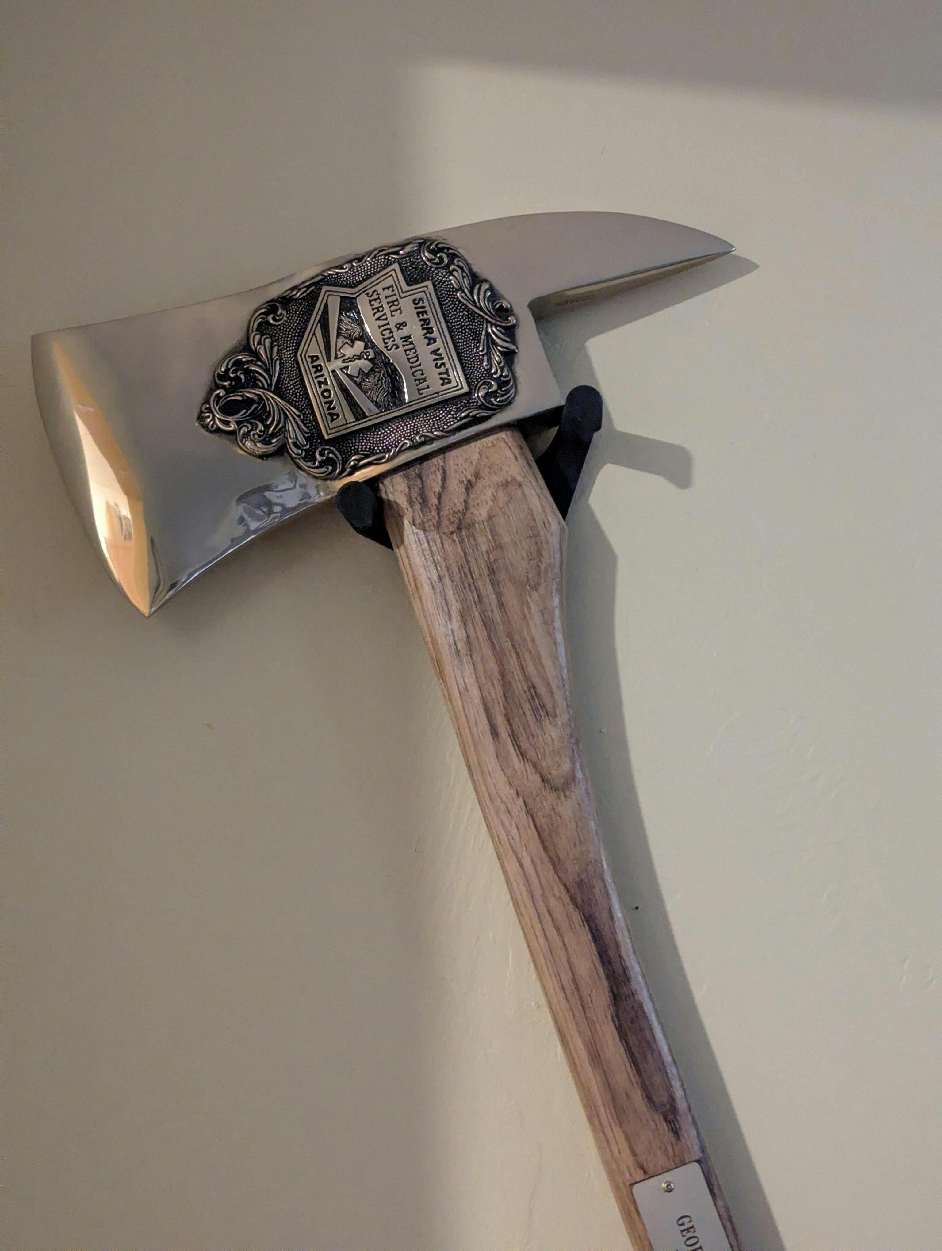 I bought one for my husband as he won FF of the year. I used this to mount his FF of the Year axe on the wall. It's perfect!