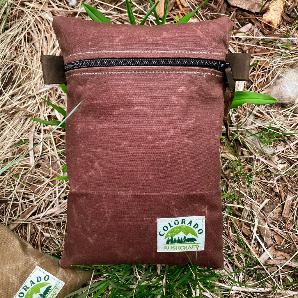 We created the waxed canvas Traditional EDC Pouch to be the perfect alternative to nylon pouches. This rustic and rugged designed top zippered gusseted pouches can hold a large amount of personal gear, yet retain the old world Bushcraft look. Built from sturdy 10.1 oz waxed canvas, they feature a zipper, leather pull, and two leather pull tabs/loops that also function to hang your EDC pouch from a pack. Use it for tinder, food storage, pack organizing, grooming kit, emergency gear, bug out, etc. It has thousands of uses, yet retains that rugged bushcraft appeal that will last a lifetime.The pouch measures 8" H x 7" L. It's light weight yet water resistant and 100% waxed cotton.