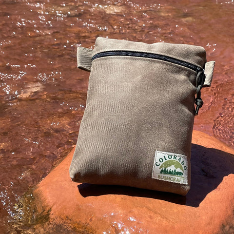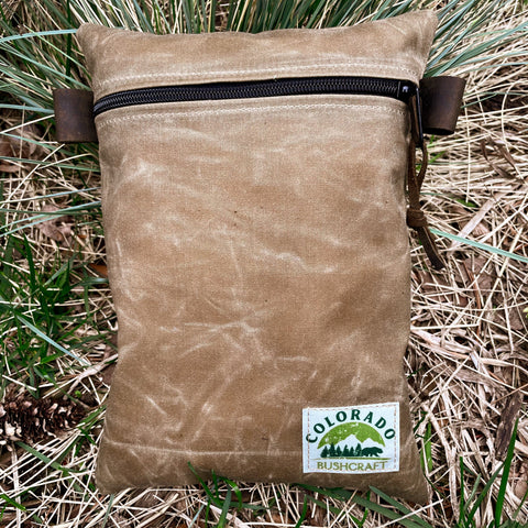 We created the waxed canvas Traditional EDC Pouch to be the perfect alternative to nylon pouches. This rustic and rugged designed top zippered gusseted pouches can hold a large amount of personal gear, yet retain the old world Bushcraft look. Built from sturdy 10.1 oz waxed canvas, they feature a zipper, leather pull, and two leather pull tabs/loops that also function to hang your EDC pouch from a pack. Use it for tinder, food storage, pack organizing, grooming kit, emergency gear, bug out, etc. It has thousands of uses, yet retains that rugged bushcraft appeal that will last a lifetime.The pouch measures 8" H x 7" L. It's light weight yet water resistant and 100% waxed cotton.