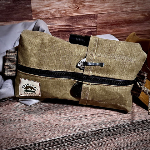 The heavy duty waxed canvas zippered wallaby box pouch is a perfect addition to any kit.  Use it for tinder, food storage, pack organizing, grooming kit, emergency gear, bug out, etc.  It has thousands of uses, yet retains that rugged bushcraft appeal that will last a lifetime.  With its external pockets, it becomes an essential and useful EDC kit.